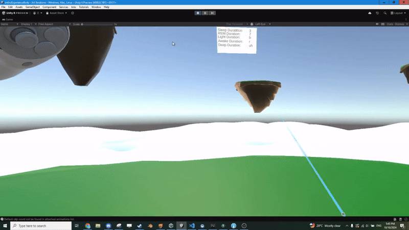 - Data Displays: For objects that represent health data, I added dynamic data displays. For example, when interacting with a sleep-related object, users can view key metrics such as sleep quality or recovery scores displayed in a visually engaging format.